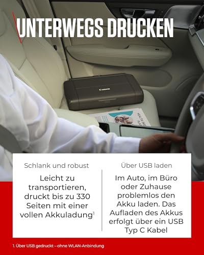 - MOBILER DRUCKER mit Akku, ideal für das mobile Büro und einfach per USB-C aufladbar
