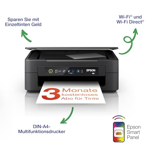 Der Epson Expression XP-2205 ist ein kompaktes Multifunktionsgerät, das Drucken, Scannen und Kopieren ermöglicht. Mit Wi-Fi und einer kostenlosen Tintenlieferung für 3 Monate bietet er eine kostengünstige Lösung für dein Büro.