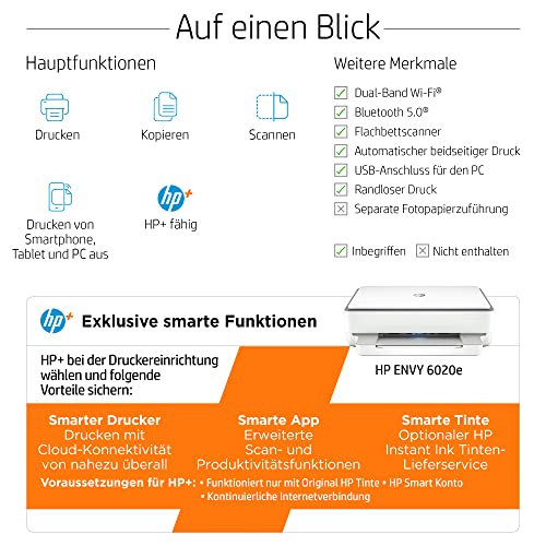 HP ENVY 6020e Multifunktionsdrucker, 3 Monate gratis drucken mit HP Instant Ink inklusive, HP+, Drucker, Scanner, Kopierer, WLAN, Airprint