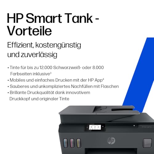 | Features | 20€ Cashback sichern: Beantragen Sie online Ihren Cashback innerhalb von 30 Kalendertagen nach Kauf unter dem folgenden Link (Deutschland & Österreich): hp.com/go/hpcashback, MERKMALE: 3-in-1 Multifunktionsdrucker; WLAN und mobiles Drucken; 100-Papierfachkapazität; ADF (Automatischer Scanner-Dokumenteneinzug); Tintenstandsensoren; Touchscreen, SPARSAM: Extrem kostengünstiges Drucken pro Seite in hoher Qualität mit innovativer HP-Tanktechnologie der nächsten Generation. Bis zu 3 Jahre Tinte im Lieferumfang enthalten (Tinte für bis zu 12.000 S/W und 8.000 Farbseiten), LANGLEBIG: 3 Jahre HP-Garantie bei Registrierung, EINFACH: Drucken ohne Druckerpatronen/-kartuschen. Einfache Einrichtung und Nachfüllen mit intelligenten Tasten und tropffreien HP-Tintentankflaschen, MOBIL: Drucken und scannen von überall mit der HP Smart App, SCHNELL: Dualband-WLAN für mehr Produktivität, NACHHALTIG: Austauschbare Druckköpfe für eine längere Lebensdauer und weniger Abfall. Hergestellt aus 18% recyceltem Kunststoff. Die Tintenflaschen sind über HP Planet Partners recycelbar |