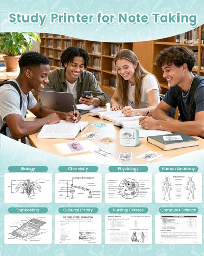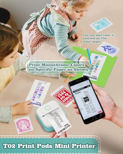 Mini Drucker – Tiny Printer T02 Mini Drucker für Smartphone Mini Thermodrucker Bluetooth Fotodrucker Aufkleber Drucker Mini Etikettendrucker für Lernen, Studiennotizen, Anatomische Diagramme, Fotos