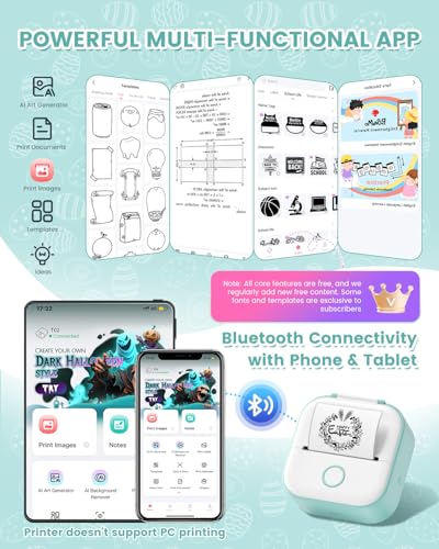| Features | Minidrucker für Alle Schüler: Memoking Sticker Maker ist für das Drucken von Lernnotizen, Anatomie Karteikarten, grafische Diagramme für Mathematik, Chemie, Geographie, Physik und Exzerpte. Der Mini-Aufkleberdrucker hilft Schülern, Zeit zu sparen. Verwenden Sie die Funktion „Scannen“, um Lerngrafiken deutlich zu drucken, Mini Tintenfrei Drucker: Memoking T02 Taschendrucker ist ein Thermodrucker, Sie können direkt mit Memoking T02 Aufkleberpapier ohne Tinte drucken. T02 Aufkleber Maker ist nicht nur für klebrige oder nicht klebrige weißes Thermopapier, sondern auch für Farbe und klar transparent Aufkleber Druckerpapier, Minidrucker für Smartphone und Tablet: Der mobile Mini-Drucker T02 ist mit iOS- und Android-Geräten kompatibel. Kabellose Bluetooth-Ein-Klick-Verbindung innerhalb von 2s in APP (kompatibel mit „Phomemo“ APP). T02 Mini-Thermodrucker bietet eine Vielzahl von Schriftarten, Filtereffekte und Themen, die Spaß zu Ihrem Drucken bringt, Vielseitiger Mini Drucker Aufkleber: T02 Bluetooth-Thermodrucker ist für kleine Unternehmen, To-Do-Liste, Studien- und Arbeitshilfe, Memo, Einkaufsliste, Lieferadresse, Quittung, Firmenlogo, Lesezeichen, Grußkarte, Lebens- und Arbeitsplan, Kinderspiele wie Labyrinth, Puzzle, Berechnung, Färbung, Alphabet lernen und Kartenerkennung. Sie können es für Büro, Zuhause, Heimwerken, Lernen und mehr verwenden, Memoking T02 Mini Drucker Aufkleber Macher: T02 mini printer ist tragbar mit 3,39 x 3,39 x 1,42 Zoll, Mini-Palme Größe macht T02 Pocket-Drucker leicht zu tragen und zu speichern. Dieser Mini-Aufkleber-Drucker ist für Halloween, Thanksgiving Day, Weihnachten, Geburtstag und Urlaub Geschenk für Familien und Freunde, Sofort Monochrome Mini-Fotodrucker: T02 ist nicht nur ein Aufkleberdrucker, sondern auch ein Thermofotodrucker. Genießen Sie es, Ihre Fotos und Bilder überall und jederzeit mit diesem Mini-Aufkleber Maker Maschine drucken, Tiny Printer mit Klebepapier: Der T02 Mini-Etikettendrucker wird mit 3 Rollen Thermopapier geliefert. Sie können die Ausdrucke mit einer Schere in Etiketten beliebiger Form und Größe schneiden, um alle Ihre Etikettierungsanforderungen zu erfüllen |