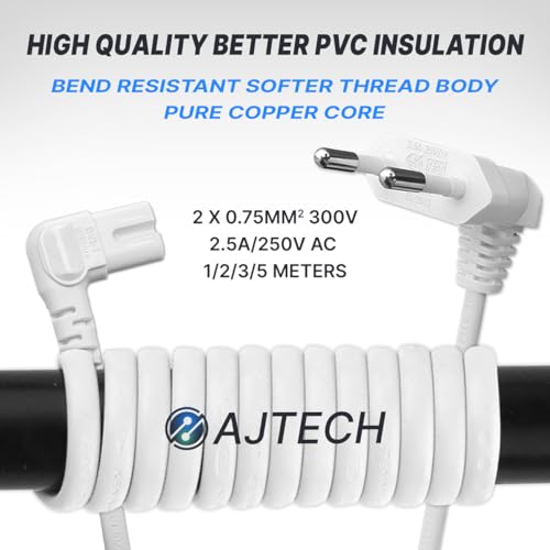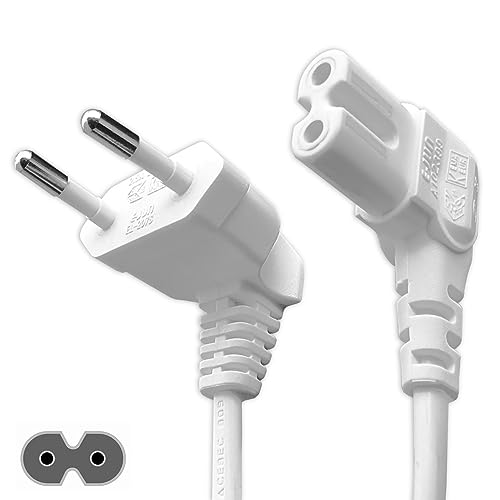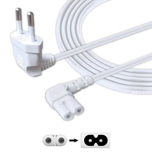 AJTECH® 5M Stromkabel TV – Zertifiziertes AC Netzkabel 2 Polig 90Grad C7 IEC Kabel Eurostecker Winkel – Kompatibel Samsung LG TV LED PS4 Slim Xbox Series S Drucker Nähmaschine PS5 Power Cable – weiß