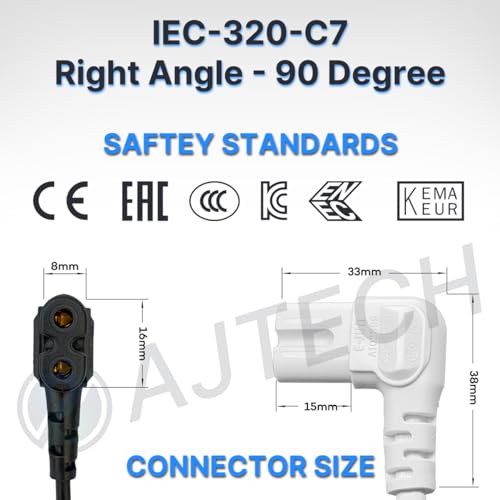 | Features | STROMKABEL C7 : Kaltgerätestecker gewinkelt C7 Kabel 5M (figure 8 Stromkabel 2 Polig). Die Nennspannung AC 2,5A / 250V ist perfekt für enge Räume hinter Geräten (IEC 60320-R C7 )., NETZKABEL WINKELSTECKER : Nicht verdrahtbarer vollumspritzter zweipoliges kabel euro netzkabel gewinkelt 240V (Eurostecker Typ C, CEE 7/16)., STROMKABEL 2 ADRIG : Hochwertiges 5-Meter langes IEC-Kabel, hergestellt aus hochwertigem 2 x 0,75 mm² reinem Kupferkern, isoliert mit biegegeprüftem PVC., AJTECH AC KABEL : Reines Kupfer Netzkabel sind sicher und langlebig. Unsere Kabel sind getestet und entsprechen den technischen Standards: EAC, ENEC, CE, KEMA-KEUR CEE., KOMPATIBILITÄT: Dieses universelle 90-Grad-Ersatz-C7-TV-anschlusskabel kann für viele arten von elektronik verwendet werden, wie z decks, audio- und video-entertainment-Systeme, Subwoofer, Soundbar, Radio, Hifi, Fire TV, LG TV stromkabel, Spielekonsolen, netzkabel PS4 Slim, PS5 kabel strom, stromkabel für PS3, elektronische Geräte und Zubehör. |