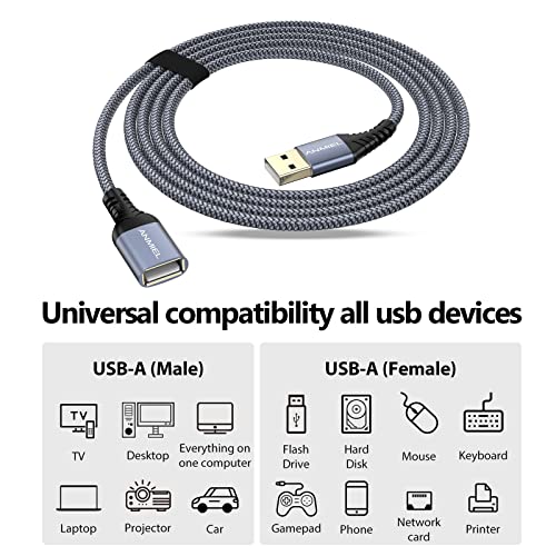 ANMIEL USB Verlängerung Kabel 3M geflochtenes USB 2.0 Verlängerungskabel Typ A Stecker auf A Buchse Datenübertragung Verlängerungskabel für USB Flash Drive/Festplatte/Drucker/Webcam
