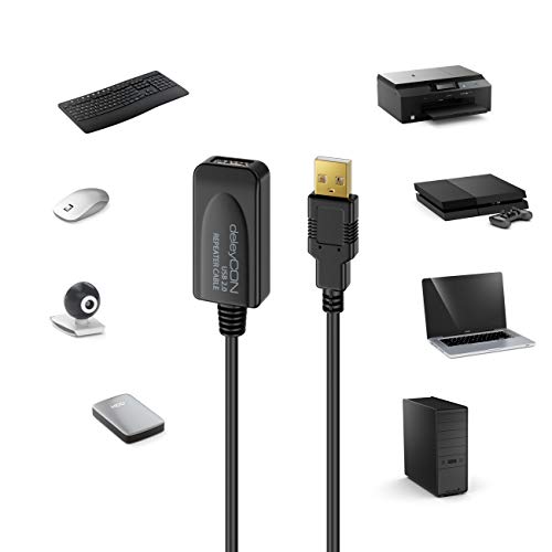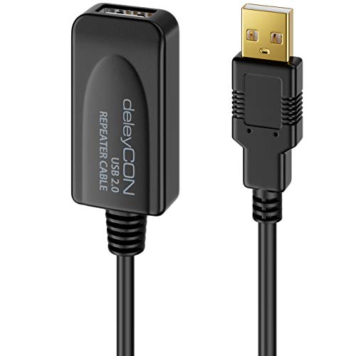 | Features | deleyCON Aktives USB 2.0 Kabel // Aktive USB Verlängerung Verlängerungskabel, Anschluss: USB2.0 A-Stecker zu USB2.0 A-Buchse // Für PC, Computer, Laptop, Drucker, Scanner etc., Integrierter Aktiver Signalverstärker // Kein Signal- oder Datenverlust // USB Repeater Kabel, Genormte, Passgenaue USB Anschlüsse // Keine Installation von Treibern erforderlich, Für lange Verbindungen z. B. zum Drucker oder Scanner, Farbe: Schwarz // Länge: 5 Meter // Anzahl: 1 Stück, Modellnummer: MK4194 // Marke: deleyCON |