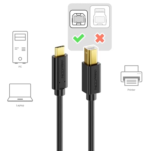 deleyCON 3,0m USB C Druckerkabel (für Drucker, Scanner, MIDI) USB-C auf USB-B Kabel für Samsung Epson HP Canon Brother iPhone 16 15 Notebook Tablet PC MacBook
