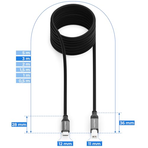 | Features | ROBUSTES DESIGN: Langlebiges geflochtenes Baumwollkabel mit Aluminiumgehäuse für maximale Haltbarkeit, USB 2.0 GESCHWINDIGKEIT: Schnelle Datenübertragung von bis zu 480 Mbit/s – ideal für Drucker und Scanner, VIELSEITIGE KOMPATIBILITÄT: Für iPhone, Tablets, Notebooks, MacBook, HP, Samsung und viele weitere Geräte, EINFACHE VERBINDUNG: USB-C auf USB-B Stecker für reibungslose Verbindungen mit Druckern und MIDI-Geräten, PREMIUM VERARBEITUNG: Hochwertige Metallstecker sorgen für zuverlässige, langlebige Anschlüsse, Farbe: Schwarz-Grau // Länge: 3 Meter (300 cm lang) // Anzahl: 1 Stück, Modellnummer: MK6037 // Marke: deleyCON |