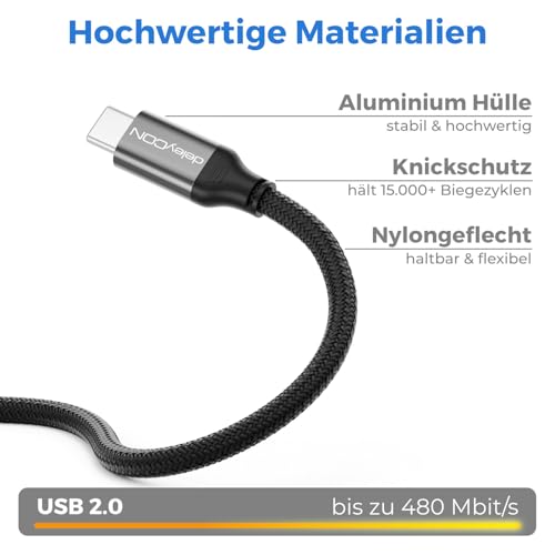 deleyCON 3,0m USB C Druckerkabel (für Drucker, Scanner, MIDI) USB-C auf USB-B Kabel Geflochten + Metallstecker für Epson HP Samsung Canon Brother iPhone 16 15 Notebook Tablet PC MacBook