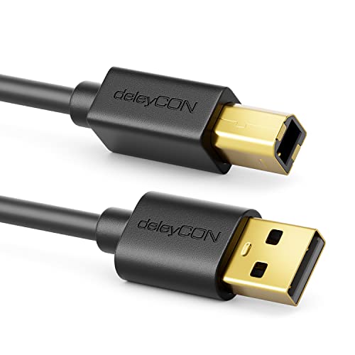 | Features | deleyCON USB 2.0 High-Speed Kabel // Datenkabel / Druckerkabel // Hochwertige, mehrfache Schirmung für schnelle, störungsfreie Datenübertragung // Passgenaue, stabile USB-Stecker, Anschluss: 1x USB A-Stecker zu 1x USB B-Stecker // Kompatibel mit allen USB-Geräten, sofern eine USB A-Buchse oder USB B-Buchse vorhanden ist, Übertragungsgeschwindigkeiten von bis zu 480 Mbps // Geschirmtes, flexibles USB 2.0 High Speed Kabel // Optimal als Druckerkabel, Hervorragend geeignet zum verbinden von z. B.: PC, Computer, Drucker, Scanner, Multifunktionsdrucker und zahlreiches weiteres USB-Computerzubehör, Abwärtskompatibel zu USB 1.0/1.1, Farbe: Schwarz // Länge: 0,5 Meter // Anzahl: 1 Stück, Modellnummer: MK718 // Marke: deleyCON |