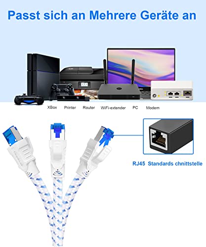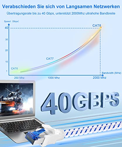 Lan Kabel Netzwerkkabel Cat 8, Ethernet Kabel 1m 2m 3m 5meter 10meter 15meter 20meter 30meter, 40Gbps 2000MHz Gigabit S/FTP Patchkabel mit rj45 Stecker für Ps5, Laptop, Schneller als Cat 7 (0,5 m)