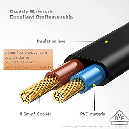 Die Verarbeitung des FSKE Netzkabels zeigt sich in einer soliden Bauqualität. Das verwendete PVC-Material wirkt robust und sorgt dafür, dass das Kabel auch bei häufiger Nutzung lange hält. Die Anschlüsse sind stabil und bieten einen sicheren Halt, was besonders wichtig ist, um Wackelkontakte zu vermeiden.