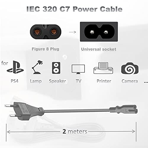 FSKE Netzkabel 2m IEC C7 2 poliger Euro Stecker Kabel Figur 8 Stromkabel für PS3 PS4 HP Philips Drucker Samsung LG TCL Sony Philips TV Fernseher PC Monitor usw – Schwarz
