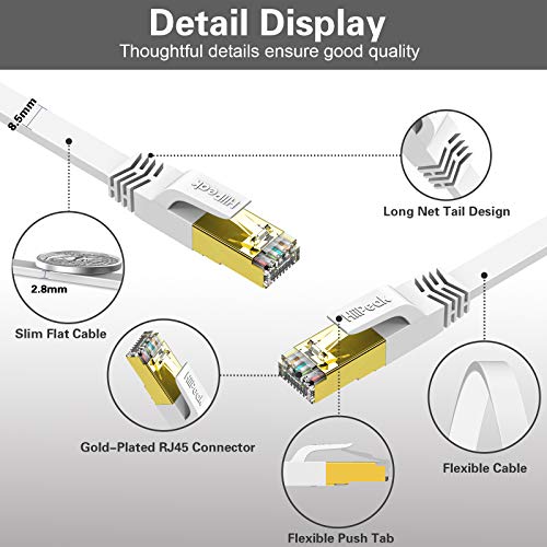 HiiPeak lan kabel 5meter cat 8 netzwerkkabel 1m 2m 3m 5m 10meter 15 meter 20meter 30 meter lan kabel cat 8 ethernet kabel internetkabel Flach mit 40 Gigabit/s und 2000 MHz, Weiß
