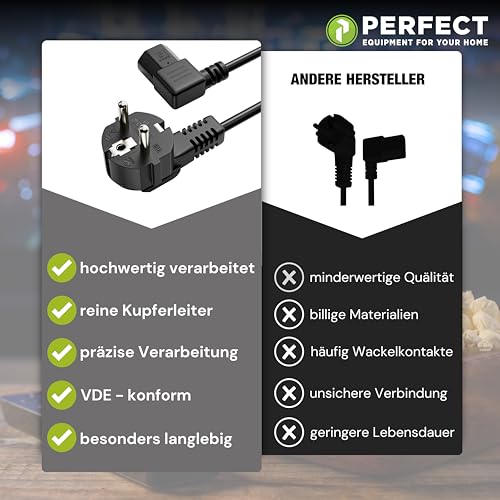 Das Perfect Stromkabel Kaltgerätekabel überzeugt durch seine hochwertige Verarbeitung, die vielseitige Einsetzbarkeit und die Zuverlässigkeit in der Stromversorgung. Es ist eine klare Empfehlung für jeden, der ein robustes und langlebiges Netzwerkkabel benötigt. Egal, ob für den privaten oder professionellen Einsatz – die Vorteile überwiegen die wenigen kleinen Nachteile. Insgesamt zeigt sich, dass du mit diesem Kabel eine sinnvolle Investition tätigst.