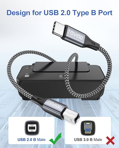 RAVIAD USB C Druckerkabel 2M, USB B auf USB C Kabel Scannerkabel Nylon USB C MIDI Kabel für Samsung, MacBook Pro/Air, Matebook, HP, Canon, Epson, Brother, Lexmark, Xerox Drucker und Scanner