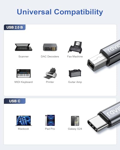 Das RAVIAD USB C Druckerkabel bietet eine bemerkenswerte Kompatibilität mit einer Vielzahl von Druckern und Scannern. Ob HP, Canon oder Epson – die meisten gängigen Modelle sind unterstützt. Dies macht das Kabel zu einer idealen Wahl für Benutzer, die unterschiedliche Marken im Einsatz haben.