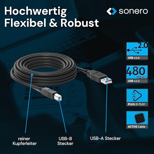 Das Sonero USB 2.0 Kabel überzeugt durch seine hochwertige Verarbeitung. Die korrosionsbeständigen Kontakte gewährleisten eine langlebige Nutzung und verhindern Signalverlust über lange Zeit.