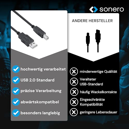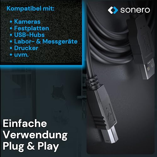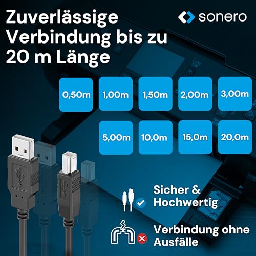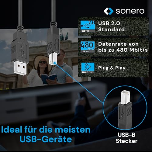 Sonero® USB 2.0 Kabel, Verbindungskabel, Druckerkabel, A-Stecker auf B-Stecker, 480 Mbit/s, schwarz, 1,00m