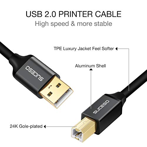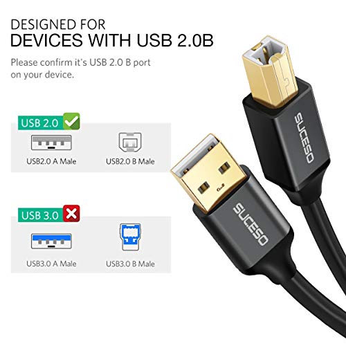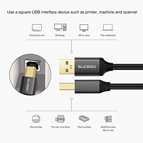 SUCESO Druckerkabel USB 2M Scanner Kabel 2.0 USB A auf USB B Drucker Kabel Typ B USB B Kabel Scannerkabel Printer Cable kompatibel mit HP, Canon, Dell, Epson, Lexmark, Xerox, Brother, Samsung usw