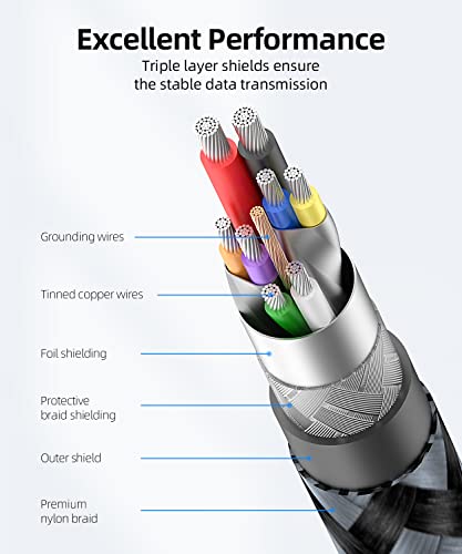 Das Kabel ist mit einer dreifachen Abschirmung ausgestattet, die aus Kupferdraht und Aluminiumfolie besteht. Dies erhöht die Stabilität der Datenübertragung und minimiert den Datenverlust über größere Distanzen. Darüber hinaus trägt die geflochtene Nylonabschirmung zur Langlebigkeit und Flexibilität des Kabels bei.