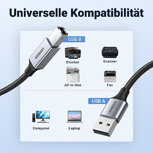 Das UGREEN Druckerkabel zeigt eine herausragende Kompatibilität mit nahezu allen Geräten, die über einen USB 2.0-Port verfügen. Egal, ob du einen Drucker, Scanner oder ein anderes Peripheriegerät anschließen möchtest, diese Kabel erfüllt die Anforderungen ohne Probleme.