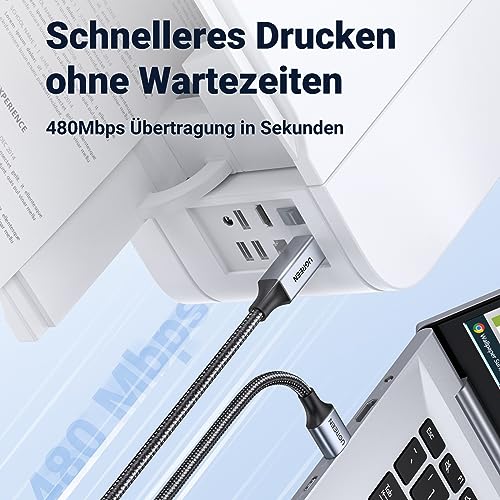 UGREEN Druckerkabel USB 2.0 Typ B USB Kabel USB A auf USB B Printer Cable Kompatibel mit HP, Canon, Epson, Lexmark, Dell, Brother (1m)