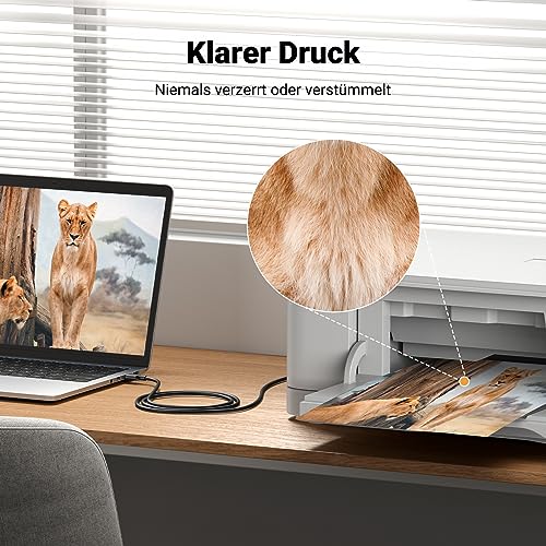 Die Übertragungsleistung ist ein entscheidendes Kriterium, wenn es um Druckerkabel geht. Das UGREEN Kabel bietet mit Geschwindigkeiten von bis zu 480 Mbps eine schnelle und stabile Verbindung. Dies ist besonders wichtig beim Scannen oder Drucken großer Dokumente, da es die gesamte Produktivität steigert.