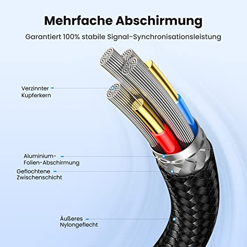 Ein herausragendes Merkmal des Kabels ist die sorgfältige Verarbeitung. Die dreifache Abschirmung schützt vor Interferenzen und sorgt so für eine zuverlässige Verbindung. Die Verwendung von hochwertigen Materialien wie Nylon-Ummantelung und Aluminiumgehäusen verlängert die Lebensdauer des Produkts erheblich.