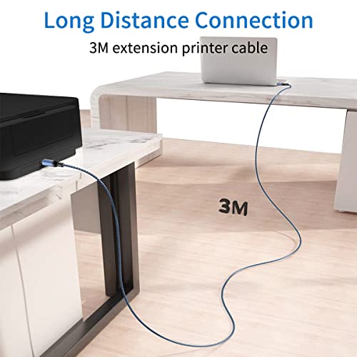 USB-Druckerkabel 3M,USB A auf USB B Drucker Kabel,USB 2.0 Typ B Kabel Hochgeschwindigkeits-Scanner kompatibel mit Lexmark, Dell, HP, Canon, Epson, Xerox, Brother, DAC und mehr, Blau