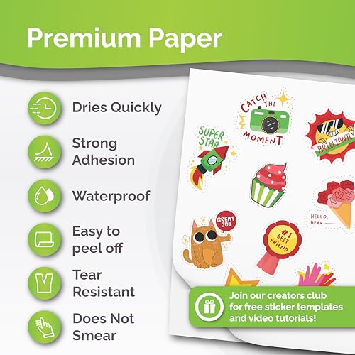 | Features | WASSERDICHT – Unser bedruckbares mattes Vinyl-Aufkleberpapier bietet 34 mattes, wasserdichtes Aufkleberpapier. Bedecken Sie den Aufkleber mit einem UV-beständigen Spray, um die wasserdichte Eigenschaft zu verbessern, INKJET- UND CRICUT-KOMPATIBEL – Unser mattes Aufkleberpapier ist vollständig mit Ihrem Tintenstrahldrucker und Cricut-Drucker kompatibel. Um Fehler beim Drucken zu vermeiden, achten Sie darauf, auf der Kreideseite zu drucken, SEHR LANGLEBIG – Langlebig, reiß- und kratzfest. Unsere bedruckbaren Vinyl-Aufkleber für Tintenstrahldrucker sind perfekt für alle Kunstwerke und haften auf jeder harten oder glatten Oberfläche., EINFACHE ANWENDUNG – Unser hochwertiges, schnelltrocknendes, mattes Aufkleberpapier ist super einfach zu verwenden. Schneiden Sie wie ein Profi entweder von Hand oder mit einer Schneidemaschine. Die Trägerschicht ist einzigartig und macht das Abziehen zum Kinderspiel, KEIN VERSCHMIEREN ODER VERSCHMIEREN – Unser Vinyl-Aufkleberpapier wurde für eine optimale Tintenaufnahme entwickelt und verhindert Verschmieren und Verschmieren, sodass Ihre Ausdrucke jedes Mal klar und lebendig aussehen. Kratzfeste Oberfläche: Das Aufkleberpapier verfügt über eine kratzfeste Oberfläche, sodass Ihre Designs auch bei regelmäßiger Handhabung makellos bleiben. |