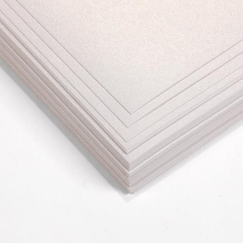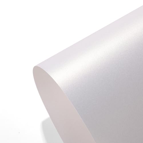 50 Blatt DIN A4 Perglanz-Papier Elfenbein Weiss-Metallic, Bastelpapier mit Perlmutt-Schimmer, 120 g/m²