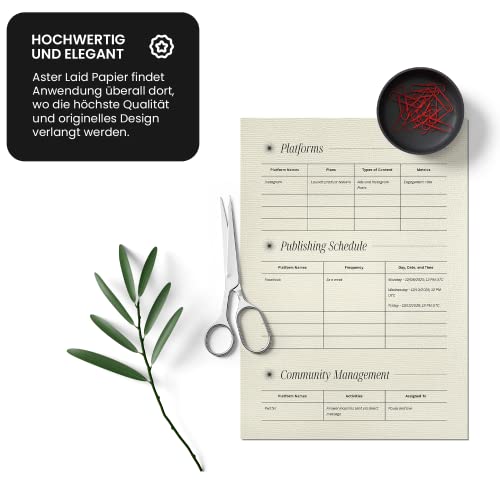 Das edle Aster Laid Papier von Netuno vereint hochwertige Optik und vielfältige Einsatzmöglichkeiten. Ideal für die Gestaltung von Einladungen, Urkunden und Briefen – für einen professionellen und eleganten Auftritt deiner Dokumente.
