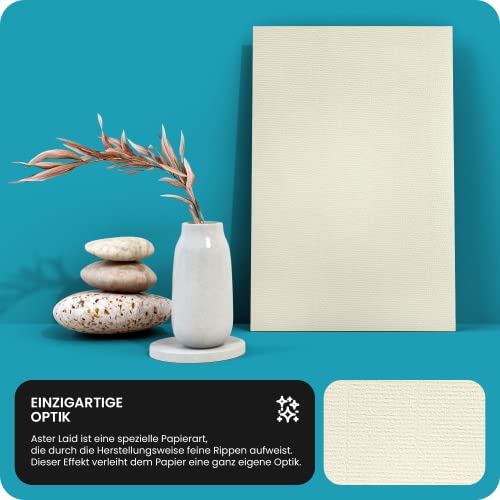 Netuno 50x Elfenbein Bastel-Papier gerippt mit Wasserzeichen DIN A4 297x 210mm 120g Aster Laid Ivory Briefpapier Effektpapier mit feiner Rippung Ausstattungspapier Designpapier Urkundenpapier