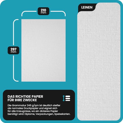 Netuno 20x Struktur-Karton Weiß leinen-geprägt DIN A4 21 x 29,7 cm 246g Elfenbeinkarton Ultraweiß Präge-Karton Bastel-Karton bedruckbar strukturiertes Papier a4 für Visitenkarten Einladungs-Karten