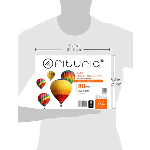 | Features | A4-DRUCKERPAPIER: A4-Blätter, perfekt für alle Ihre Druck- und Kopieranforderungen. A4-Foliopackung mit 250 Blatt, ideales Papier für alle Arten von Schreiben und zum Drucken von beruflichen, akademischen oder persönlichen Dokumenten, egal ob zu Hause, im Büro oder in Bildungsumgebungen., QUALITÄT: Ofituria-Folien haben aufgrund ihrer Dicke und weichen Textur ein tolles Finish. Der Farbdruck sorgt für hellere Töne und tiefere Schwarztöne und garantiert so eine höhere Druckqualität. Gewicht von 80+/- 3 g/m² und Dicke von 108 +/- 3 Mikrometer., SOSTENIBILIDAD: Ofituria y sus proveedores explotan únicamente áreas que no están arboladas y garantizamos que nuestra materia prima, la fibra de madera, procede de fuentes sostenibles. Normas: ISO 536, ISO 11475, ISO 2471, ISO 534, ISO 8791-2., PAPEL DIN A4: tamaño estándar y peso adecuado, los folios A4 son perfectos para archivar documentos importantes, mantener registros organizados y crear carpetas para proyectos tanto en entornos empresariales como domésticos., PAPEL PARA IMPRESORA A4: perfecto para imprimir documentos profesionales como cartas comerciales, informes, currículums vitae y propuestas. Su calidad y nitidez aseguran una presentación elegante y legible. Imprimir materiales educativos, presentaciones y gráficos, documentación legal y oficial, imprimir materiales promocionales…etc |