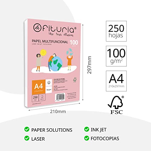Packung mit 250 weißen DIN A4 Blättern, 100g Druckerpapier. Multifunktionales Kopierpapier für Schule und Büro. Ideal für Laserdrucker, Tintenstrahldrucker oder Kopierer – Ofituria