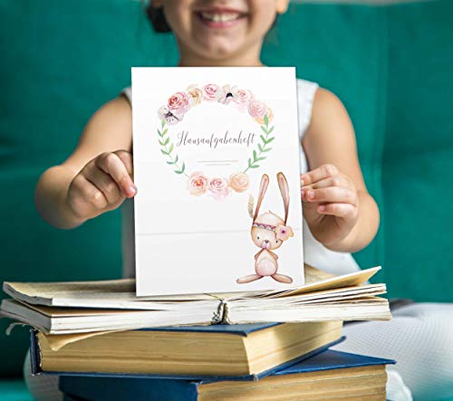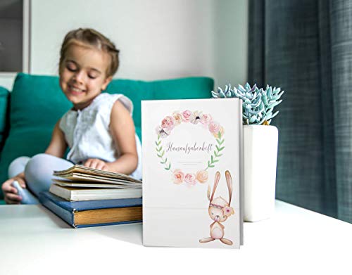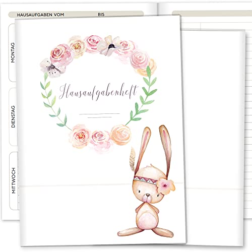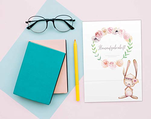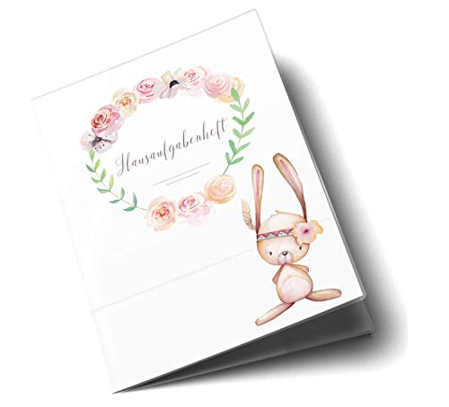 Olgs Hausaufgabenheft Hülle Cute Boho inkl. Heft Schulheft Schutzhülle Umschlag Geschenkidee Einschulung Grundschule (ohne Personalisierung, Hase)