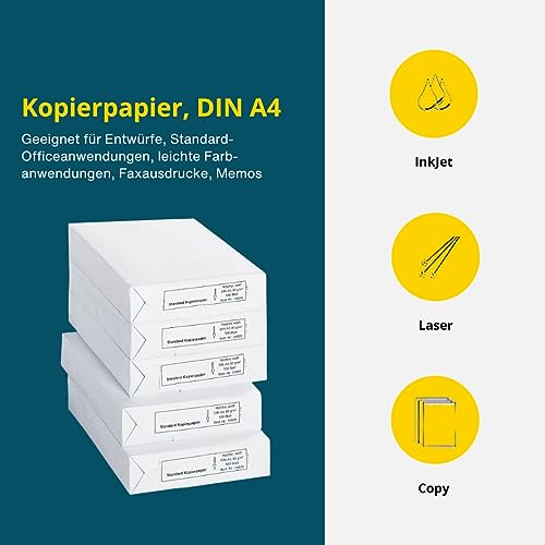 SCHÄFER SHOP Kopierpapier A4-80g/m² Papier – Druckerpapier Laserpapier Inkjetpapier Faxpapier – 2500 Blatt, 5 Packungen mit 500 Blatt, weiß