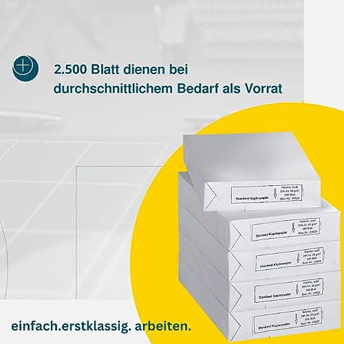Mit einem hohen Volumen an 2500 Blatt bietet dieses Produkt ein ausgezeichnetes Preis-Leistungs-Verhältnis, insbesondere für Büros oder Privatanwender, die regelmäßig große Mengen an Papier benötigen.