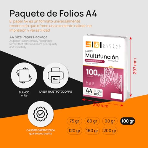 A4-Papier, 100 g, Druckerpapier A4, Packung für Schule, Arbeit oder Privatgebrauch, A4-Blätter für Kopierer und Mehrzweck, DIN A4-Papier extra weiß – SIDI (100 h, 100 g)