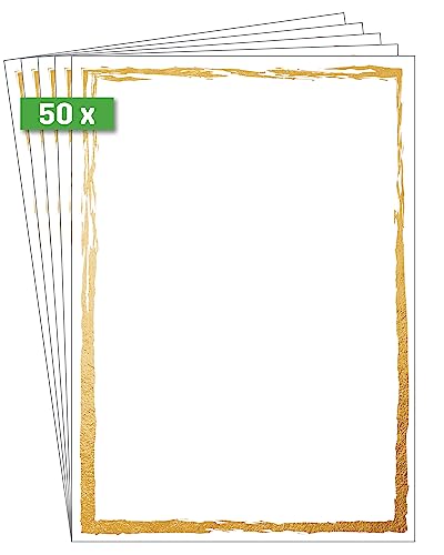 Das stilvolle Design mit dem goldgelben Pinselstrichrahmen verleiht dem Papier eine edle Note. Dieses Motiv eignet sich hervorragend für formale Einladungen, Urkunden oder kreative Grüße.