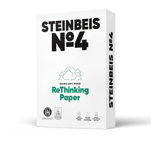 Steinbeis No. 4 Druckerpapier – 2500 (5 x 500) Blatt DIN A4 Recycling-Papier 80 g/m², Weiß & Chlorfrei, hochwertiges Kopierpapier ISO 100 / CIE 135
