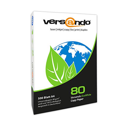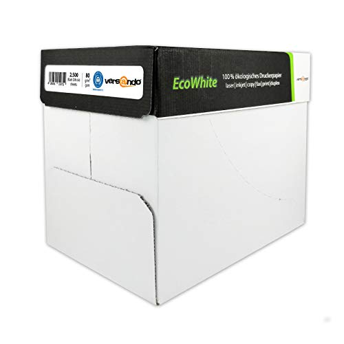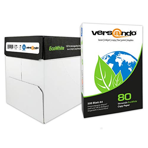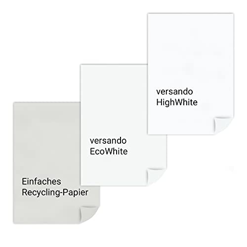 versando 2.500 Blatt Recyclingpapier DIN A4 EcoWhite 80g Kopierpapier Druckerpapier Öko hohe Weiße ISO 90 – Blauer Engel zertifiziert – Umweltpapier