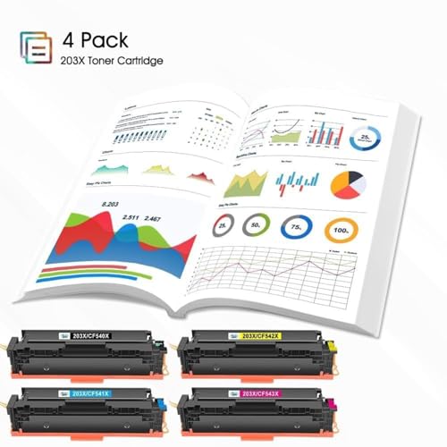 Erlebe brillante Druckqualität mit den Cool Toner Kompatiblen Tonerkartuschen für HP 203X und 203A. Das Set enthält Schwarz, Cyan, Gelb und Magenta – ideal für deinen HP Color LaserJet Pro. Einfach zu installieren und langlebig!