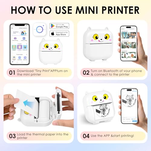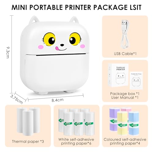 | Features | 【Bluetooth-Sofortverbindungsdrucker】: Der Drucker verwendet die ''Tiny print''-APP-Bluetooth-Verbindung, es sind keine weiteren komplizierten Vorgänge erforderlich. Befolgen Sie einfach die Verbindungsanweisungen, um schnell eine Verbindung zu einem beliebigen Smartphone herzustellen, und Sie können Ihre Reise zum drahtlosen Schwarzweißdruck beginnen Um das Wachstum Ihres Kindes und die Bedeutung des Reisens festzuhalten, spüren Sie die Freude an schönen Erinnerungen., 【Thermal Inkless Printing Technology】: Der Bluetooth-Thermodrucker verwendet die Thermodrucktechnologie, verwendet keine Tinte, ist bequemer zu bedienen, umweltfreundlicher, unterhaltsamer und praktischer. Thermische Schwarz-Weiß-Druckbilder, damit Ihre Schwarz-Weiß-Fotos elegant und cool aussehen. Hinweis: Wenn der Druck nach mehrmaligem Gebrauch des Fotodruckers nicht klar ist, können Sie den Laserbalken des Druckers mit Alkohol abwischen (der Laserbalken befindet sich im Papierladefach)., 【Ausgezeichnete Leistung Bluetooth-Drucker】: Tragbarer Drucker mit super Druckqualität, 203 DPI hoher Auflösung, eingebautem wiederaufladbarem 800-mAh-Li-Ion-Akku mit hoher Dichte, längerer Akkulaufzeit, hochwertiger Fotodrucker, um schöne Momente besser festzuhalten. Nachdem Sie diese wunderschöne Landschaft gesehen haben, können Sie die verlorene Schönheit in klaren Bildern wiederentdecken., 【Netter und praktischer Sofortdrucker】: Mini-Smartphone-Foto-Thermodrucker, elegantes und einfaches, aber niedliches Aussehen, kompakte und leichte Körpergröße, kann auf Reisen in eine Tasche oder Tasche gesteckt werden, Sie können ihn mitnehmen, einfach jedes Sie aufzeichnen etwas loggen möchte., 【Der beste Mini-Fotodrucker für Geschenke】: Er unterstützt eine Vielzahl von funktionalen Anwendungen und kann Fotos, Aufkleber, Arbeitspläne usw. drucken. Er ist eine ausgezeichnete Geschenkauswahl für Studenten, Paare, Familienmitglieder, Freunde usw. und ein kleiner Assistent, um ein gutes Leben aufzunehmen! |