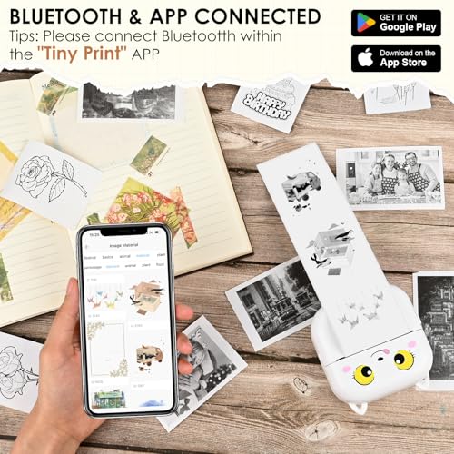 Die Bedienung des Druckers könnte nicht einfacher sein. Nach der Installation der „Tiny Print“-App auf deinem Smartphone kannst du im Handumdrehen eine Verbindung über Bluetooth herstellen. Die App führt dich durch den Verbindungsprozess, was besonders für weniger technikaffine Benutzer eine Erleichterung darstellt.