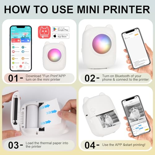| Features | 【Bluetooth-Sofortverbindungsdrucker】: Der Drucker verwendet die ''Fun print''-APP-Bluetooth-Verbindung, es sind keine weiteren komplizierten Vorgänge erforderlich. Befolgen Sie einfach die Verbindungsanweisungen, um schnell eine Verbindung zu einem beliebigen Smartphone herzustellen, und Sie können Ihre Reise zum drahtlosen Schwarzweißdruck beginnen Um das Wachstum Ihres Kindes und die Bedeutung des Reisens festzuhalten, spüren Sie die Freude an schönen Erinnerungen., 【Thermal Inkless Printing Technology】: Der Bluetooth-Thermodrucker verwendet die Thermodrucktechnologie, verwendet keine Tinte, ist bequemer zu bedienen, umweltfreundlicher, unterhaltsamer und praktischer. Thermische Schwarz-Weiß-Druckbilder, damit Ihre Schwarz-Weiß-Fotos elegant und cool aussehen. Hinweis: Wenn der Druck nach mehrmaligem Gebrauch des Fotodruckers nicht klar ist, können Sie den Laserbalken des Druckers mit Alkohol abwischen (der Laserbalken befindet sich im Papierladefach)., 【Ausgezeichnete Leistung Bluetooth-Drucker】: Tragbarer Drucker mit super Druckqualität, 200 DPI hoher Auflösung, eingebautem wiederaufladbarem 1200-mAh-Li-Ion-Akku mit hoher Dichte, längerer Akkulaufzeit, hochwertiger Fotodrucker, um schöne Momente besser festzuhalten. Nachdem Sie diese wunderschöne Landschaft gesehen haben, können Sie die verlorene Schönheit in klaren Bildern wiederentdecken., 【Netter und praktischer Sofortdrucker】: Mini-Smartphone-Foto-Thermodrucker, elegantes und einfaches, aber niedliches Aussehen, kompakte und leichte Körpergröße, kann auf Reisen in eine Tasche oder Tasche gesteckt werden, Sie können ihn mitnehmen, einfach jedes Sie aufzeichnen etwas loggen möchte., 【Der beste Mini-Fotodrucker für Geschenke】: Er unterstützt eine Vielzahl von funktionalen Anwendungen und kann Fotos, Aufkleber, Arbeitspläne usw. drucken. Er ist eine ausgezeichnete Geschenkauswahl für Studenten, Paare, Familienmitglieder, Freunde usw. und ein kleiner Assistent, um ein gutes Leben aufzunehmen! |