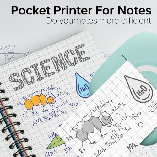 cabaro Mini Drucker Aufkleber Drucker Fotodrucker mit 3 Rollen Bluetooth Thermodrucker für Lernen, Studiennotizen, Anatomische Diagramme, Fotos