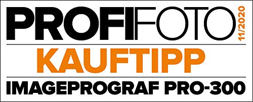 | Features | BESONDERHEITEN – Mit 10 separaten LUCIA PRO-Pigmenttinten liefert der Drucker hervorragende Farben. Mit dem speziellen Chroma-Optimizer wird das Bronzing reduziert und erstaunliche Farbverläufe ermöglicht, DRUCKEN IN GALERIEQUALITÄT – Fotodruck auf ganz neuen Niveau: exquisite Drucke, die durch ihre reichhaltigen und lebendigen Farben überzeugen. Der Drucker passt auf den Schreibtisch und wiegt nur 14,4 kg, randloser Druck bis A3+, Papierlänge bis 99 cm, Menüanzeige auf 7,5 cm (3 Zoll) LCD-Farbdisplay, KABELLOS DRUCKEN – Kompakter als das Vorgängermodell PIXMA PRO-10S, bildet dieser A3+ Drucker das Herzstück Ihrer kreativen Ausdrucksform, einfach per LAN oder WLAN mit einem PC oder Mac verbinden, HOCHWERTIGE SCHWARZ-WEIß-DRUCKE – ermöglicht der imagePROGRAF PRO-300 dank der speziellen Mattschwarztinte auf Fine Art Papier mit noch tieferen Schwarztönen, LIEFERUMFANG – imagePROGRAF PRO-300 A3+ Drucker, Netzkabel, Druckkopf, 10 separate Tintentanks, CD-Halter, Setup CD-ROM (CD nur für Windows – Treiber für Mac OS sind online erhältlich), Kurzanleitung |